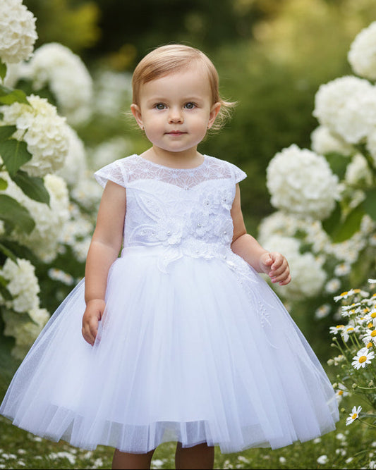 Amazing Beaded Cap Sleeve Baby Girls Dress - Ivory & White ♥