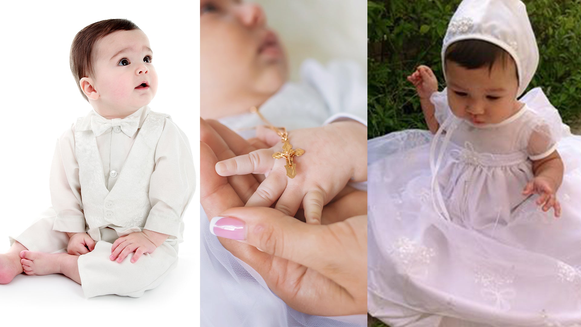 Baptism OutfitsShop Baptism OutfitsFor your child’s or God child’s Baptism, trust us for quality Christening gowns and Baptism gowns for boys and girls at the best value. Whether its a traditional girls white baptism dress , short white Christening dress, long Christening dress, boys Christening romper or a sharp boys baptism suit with bow tie, we’ve a great selection for you! For all your christening and baptismal needs, shop our store today!