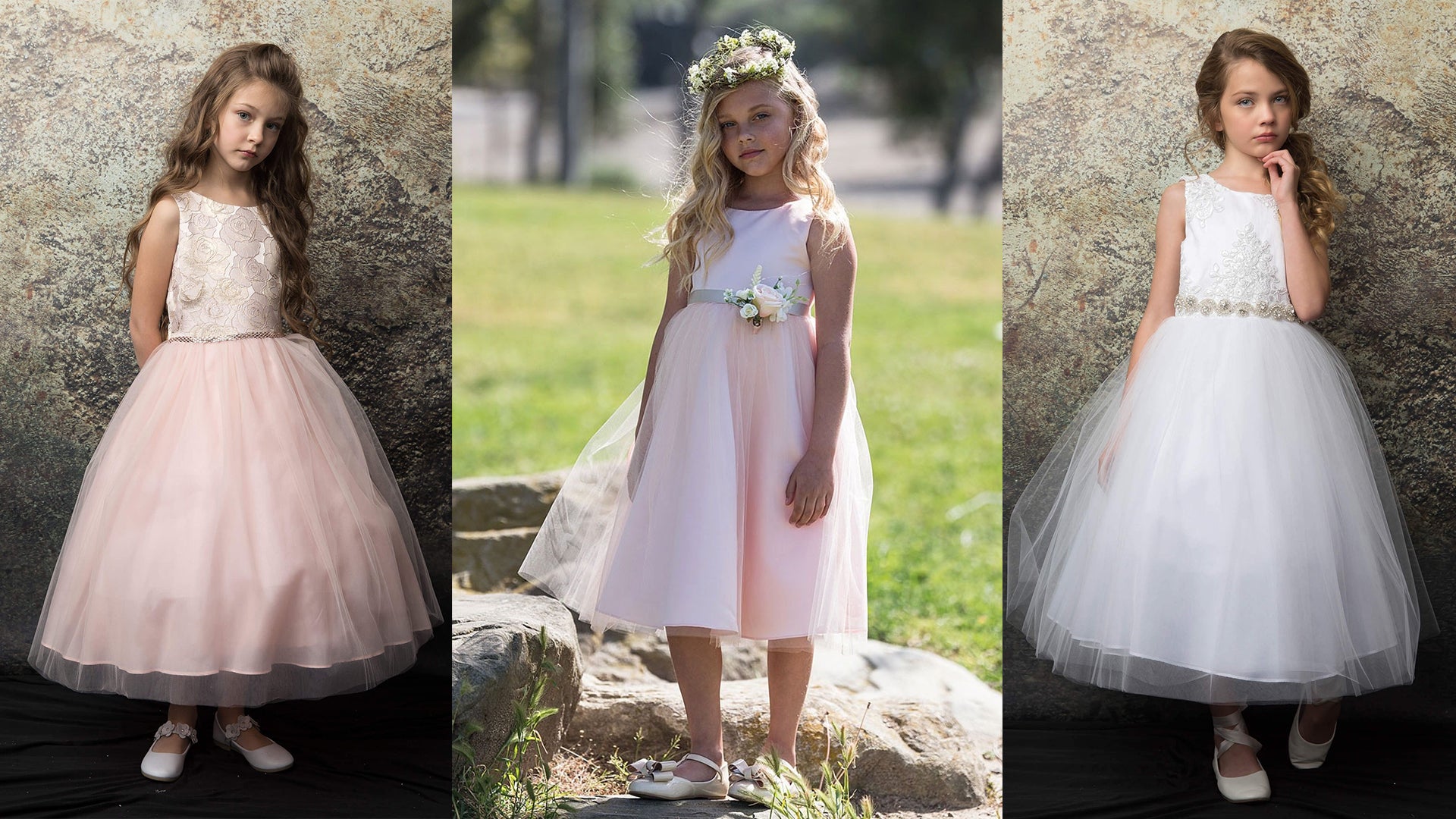 Flower Girl DressesShop Flower Girl DressesFlower girl dresses in gorgeous designs are here! Find the perfect dress for your flower girl and all the little girly-girls in your wedding party. Accessorize to your heart’s content with veils or hats, gloves and more! Also see our collection of girls party dresses and oh-so-cute dresses for babies and toddlers. Also, find Holy First Communion dresses and girls First Communion gowns that are high end, yet easy on the wallet.