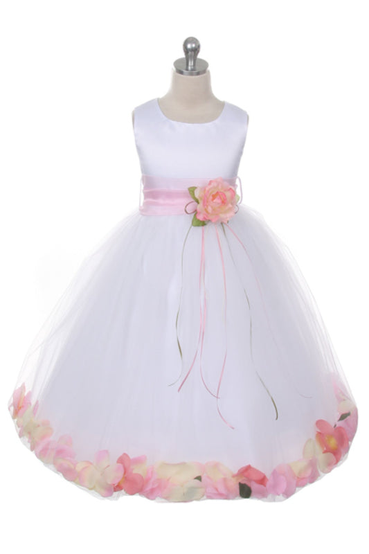 Classic Flower Petal Sash Flower Girl Dress Ivory White Blush Canada
