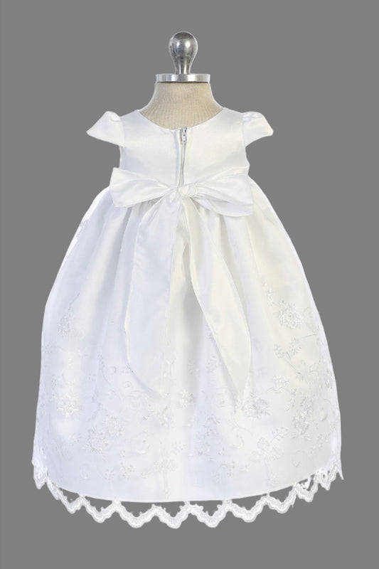 Girls Baptism Gown With Sequined Ribbon Skirt