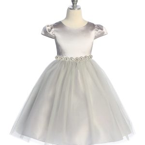 Simple Satin Cap Sleeve Girls Dress - Ivory