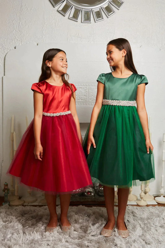 Simply Beautiful Satin Girls Holiday Dress Red Gold Canada