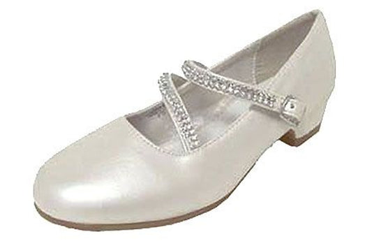 Girls Diamond Strap Flat Shoe - White Ivory Silver Black