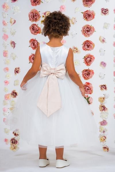 Satin Sash & Bow Girls Plus Size Dress Blush Ivory White Canada