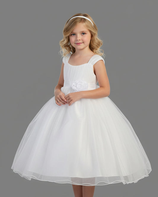 Pleated Cap Sleeve Girls First Communion Dress White Ivory Canada