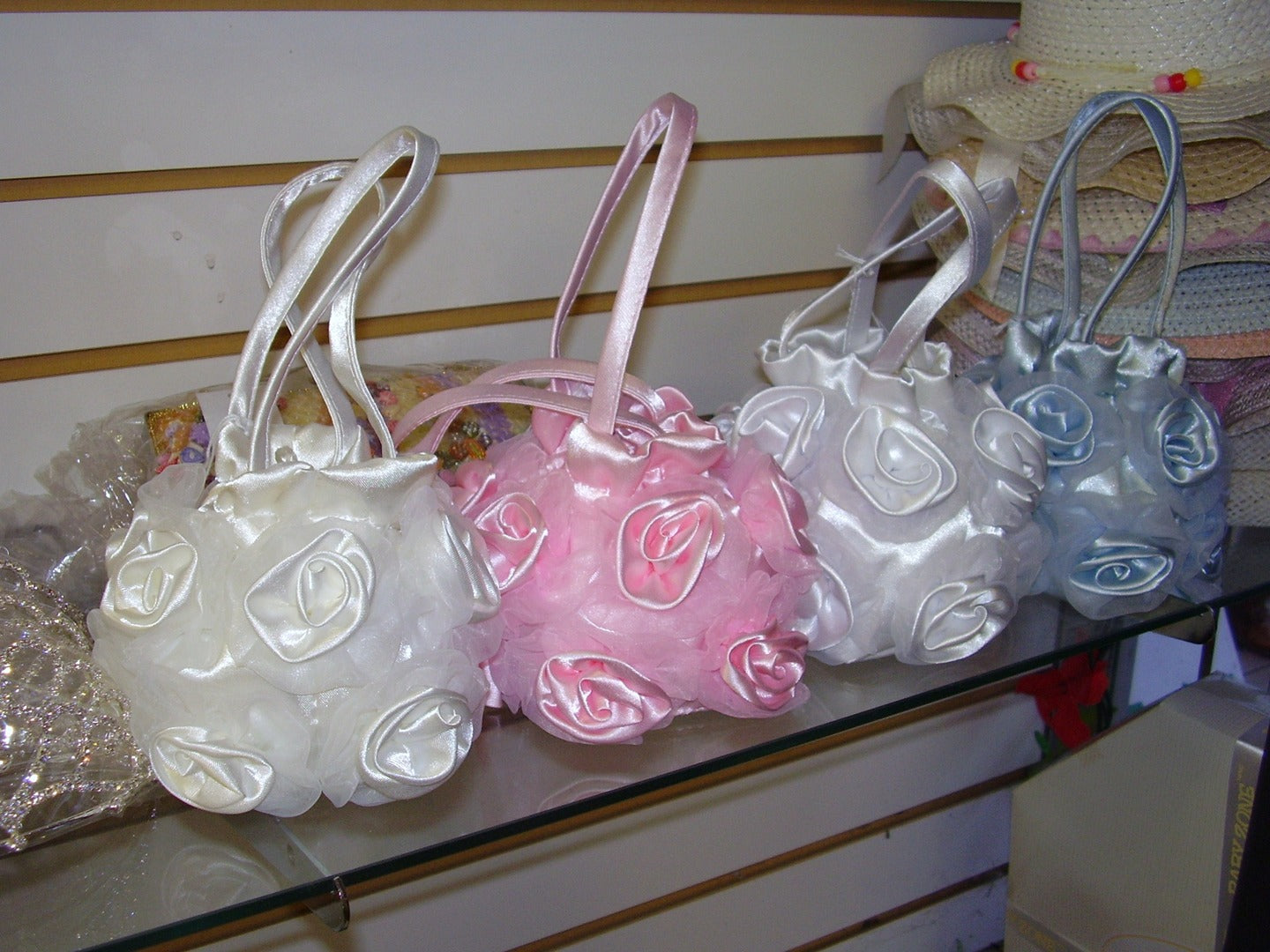 Girls purse satin rose bud made of hand rolled rose buds in organza and satin.